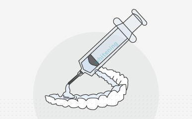診療室でホワイトニング剤を塗り行う方法です。通常1ブロック3~4回の処置が必要です。ホームホワイトニングに比べて即効性がありますが、自然な感じの白さという点ではホームワイトニングに劣ります。また後戻りも早く、自分で気軽に処置できないのが難点です。白くしたい歯が数本に限られている方や、ホームホワイトニング後に部分的にさらに白くしたい時などに行う方法です。