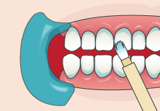 製作したカスタムトレー(マウスピース)を装着し、ホワイトニングジェルの使い方や使用時間などご自宅での使用方法を説明し、医院での事前処置は終了となります。