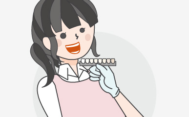 ホワイトニング前のシェードチェック(歯の色の確認)を行います。ホワイトニング薬剤を塗り、照射器による光を照射し、最後に薬剤を洗い流します。